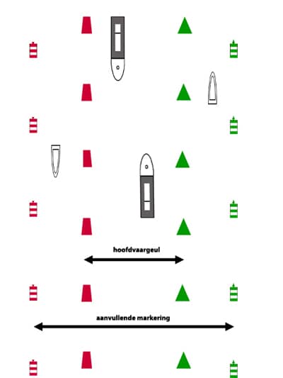 - laterale betonnin: deze maakt de loop van het vaarwater zichtbaar;