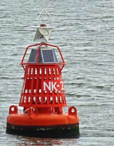 Deze boei markeert het diepste punt van het vaarwater. Je kunt hem veilig aan beide kanten passeren.