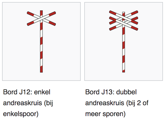 Deze overwegen herken je aan een andreaskruis (wit bord met rode rand in X-vorm).