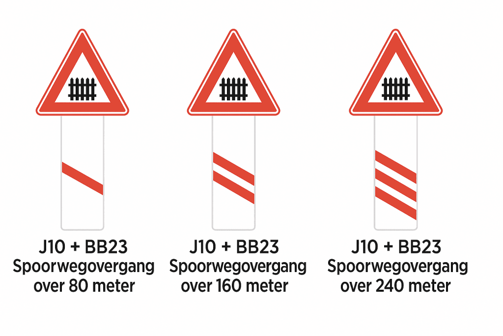 💡 Onthoud: Hoe minder strepen, hoe dichter je bij de overweg bent.